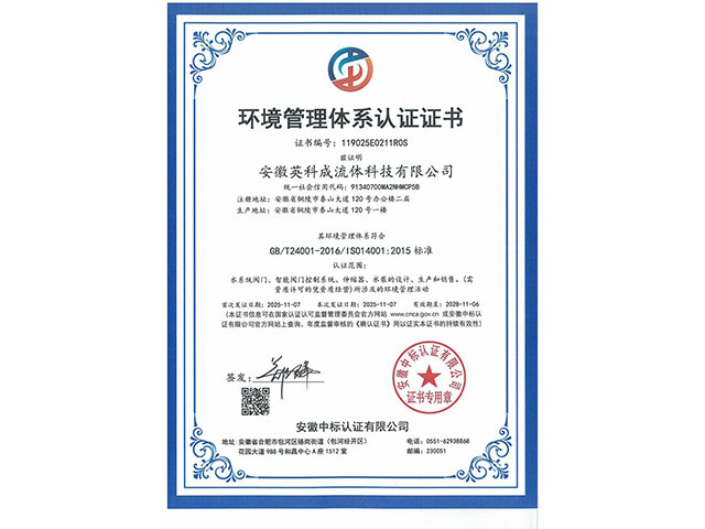• 環境管理體系認證證書